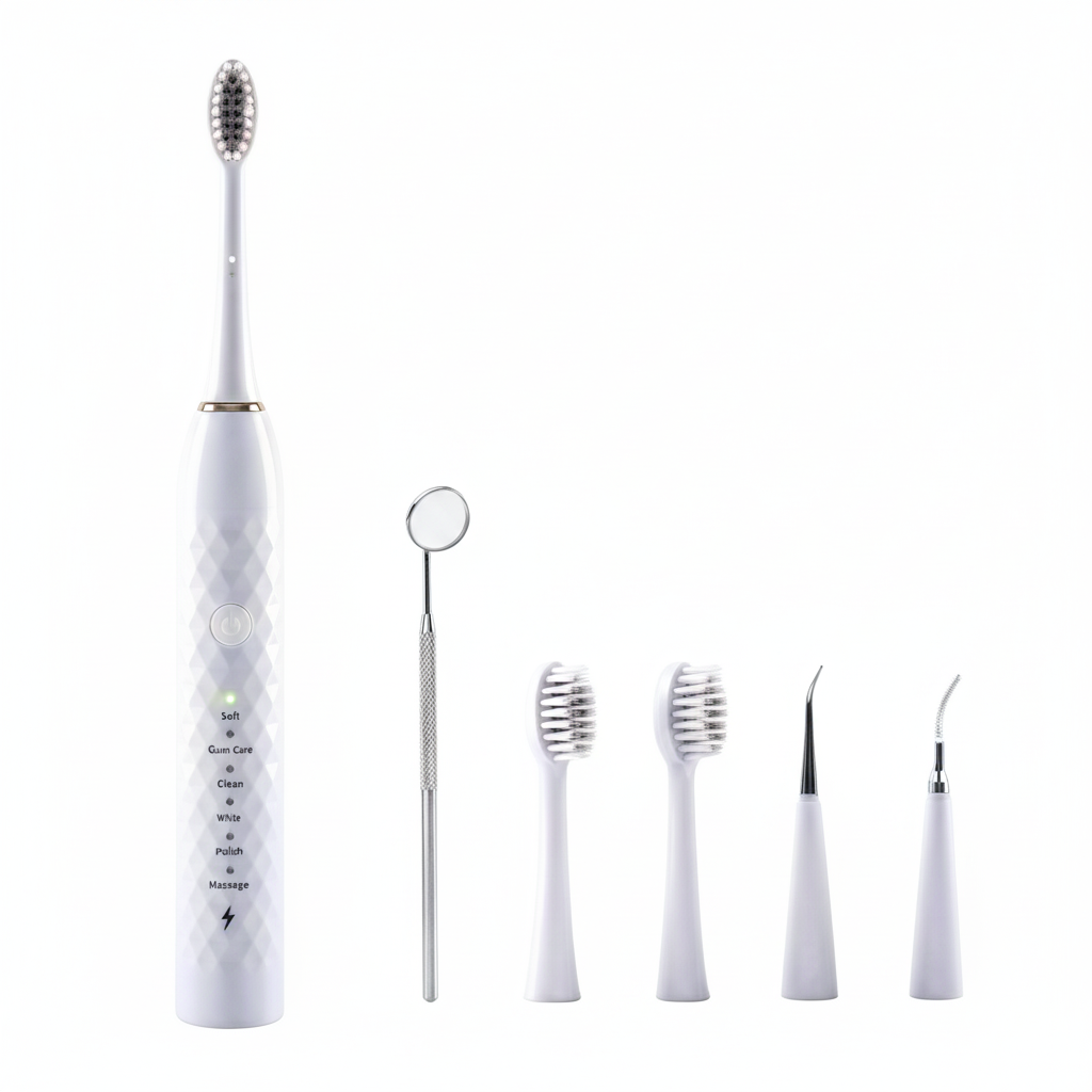 El Kit de Limpieza Dental StockLider ofrece una higiene oral profunda y segura gracias a su cepillo eléctrico de alta vibración, capaz de eliminar eficazmente placa, sarro y manchas difíciles sin dañar las encías.